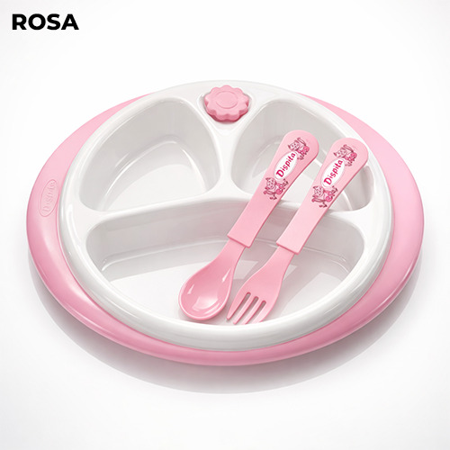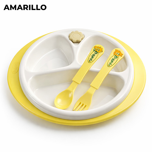 Plato térmico involcable con cubiertos, libre de BPA (Bisfenol A). Posee tres compartimientos divisorios, mantiene la temperatura de la comida, posee base de goma antideslizante, contiene un juego de cubiertos infantiles de regalo.