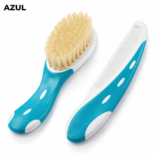 Set de cepillo y peine. Para el cuidado diario del cabello de los bebés y niños pequeños. Cepillo con cerdas suaves para una sensación natural. El peine con puntas redondeadas protege el delicado cuero cabelludo del bebé. Gracias a la forma de los mangos, el cepillo y peine se pueden sostener de forma segura.