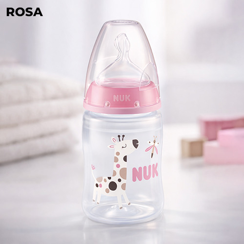 Mamadera línea First Choice+, ahora con indicador de temperatura en la escala de medición. El color cambia con la temperatura del contenido. Si el alimento está demasiado caliente, el indicador pasa de color azul a blanco. Tetina de silicona con formato Ortodóntico NUK mejorado, que se adapta perfectamente a la mandíbula del bebé. Con sistema de ventilación NUK ANTI-COLIC AIR SYSTEM, que ayuda a prevenir los cólicos. Cuello ancho que facilita el llenado y la limpieza. Probado clínicamente: para una combinación óptima de amamantamiento y mamadera. 150ml, con tetina de 0-6 meses, flujo M.