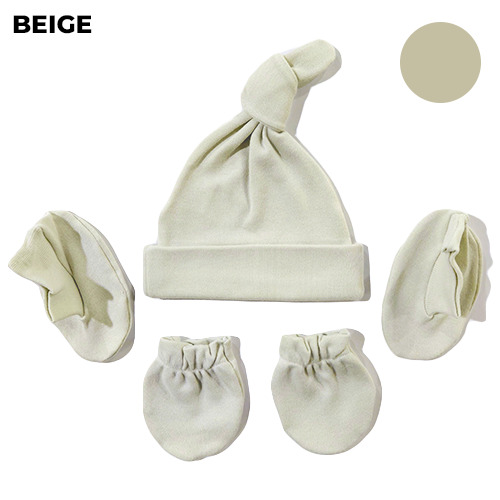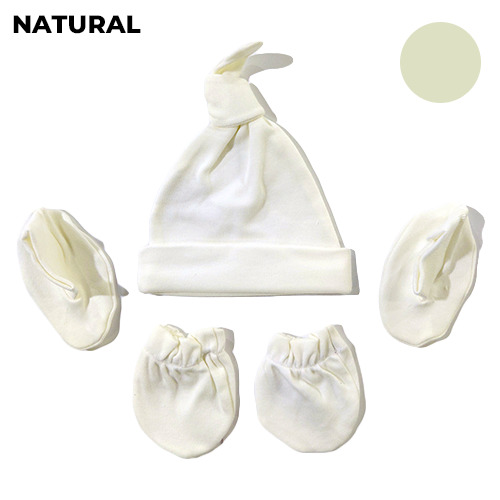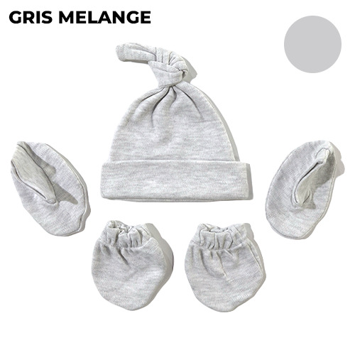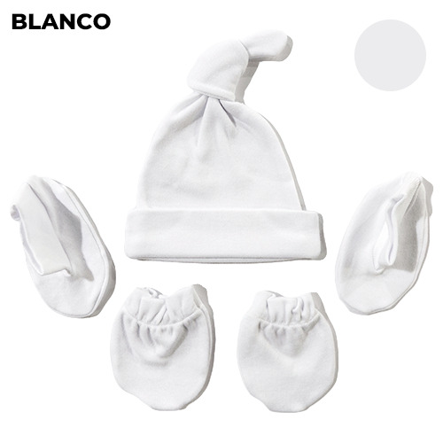 Set de gorrito, mitones y escarpines de algodón para bebé.
