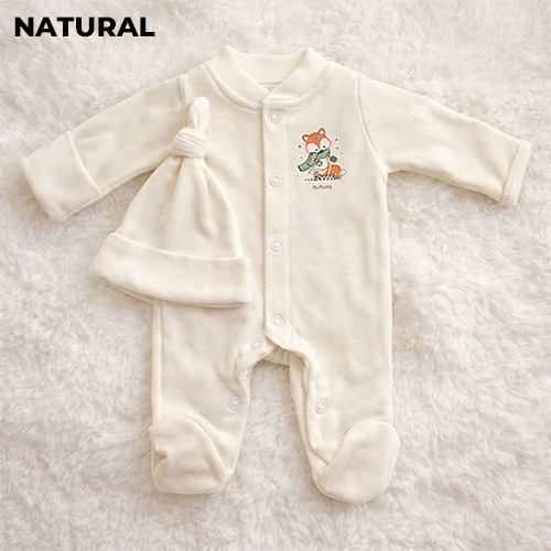 Enterito prematuro de algodón con gorro, broches y estampa.