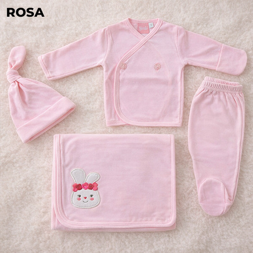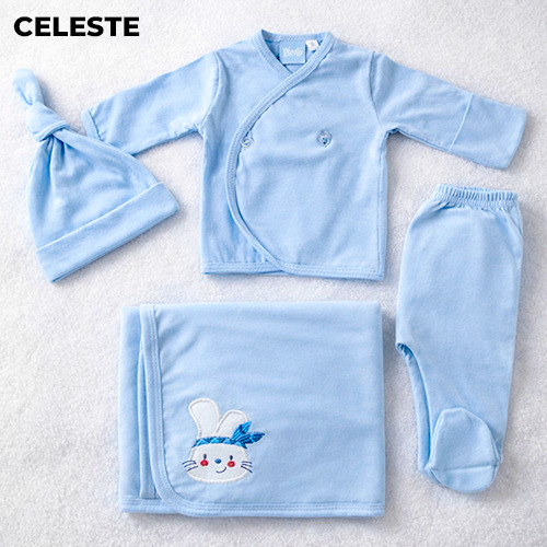 Ajuar de algodón 4 piezas con bordado. Batita, ranita, gorro con nudo y recibidor.