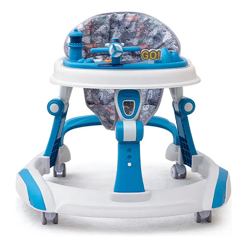 Andador caminador para bebé 2 en 1. Bandeja de juegos y musical. Estructura estable y juguetes interactivos. Características destacadas: • Base ancha y diseño equilibrado que proporcionan una gran estabilidad, minimizando el riesgo de vuelcos. • Asiento acolchado y respaldo cómodo. • Altura del asiento regulable en modo andador para adaptarse al crecimiento del bebé. • Bandeja de actividades con melodías, luces y juguetes interactivos que estimulan los sentidos del bebé y desarrollan su motricidad fina. (requiere 2 pilas AA no incluidas). • La bandeja se puede retirar para usar el andador como una sillita de comer.. • Manijas acordes a las manos del bebé para empujar en el modo caminador. Especificaciones: • Uso recomendado de 6 a 18 meses. • Dimensiones: Ancho: 56 cm x Alto: 55 cm x Largo: 68 cm. • Altura del piso al asiento: 21 cm (posición más baja), 27 cm (posición más alta). • Altura del piso a las manijas (modo caminador): 44 cm. • Diámetro de 5 cm para las ruedas.